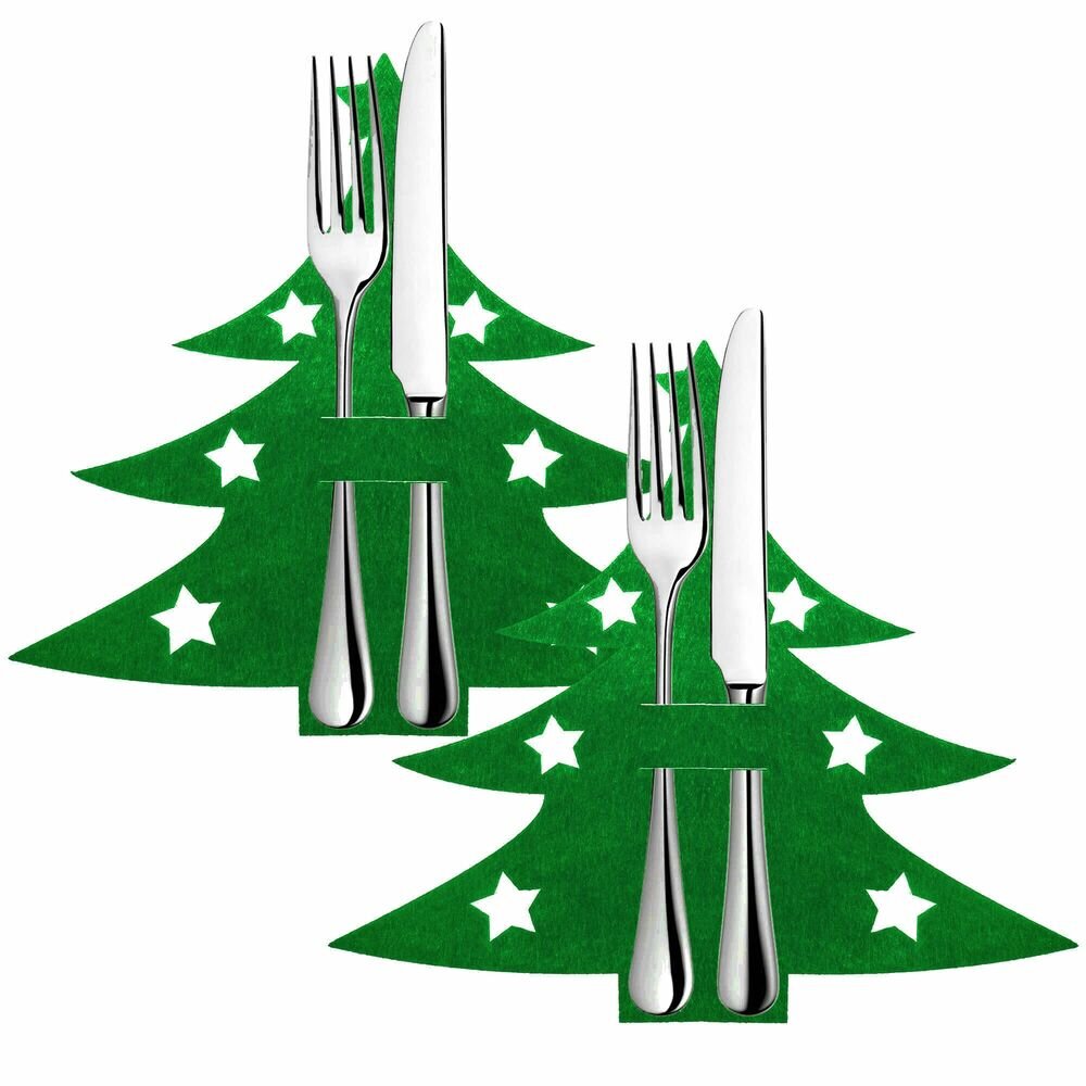 Obal na příbory Stromek zelený, sada 2ks, vánoční dekorace