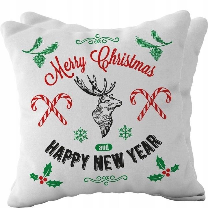 Dekoracyjna poduszka świąteczna "Wesołych Świąt" z reniferem Poduszka z napisem "Wesołych Świąt", motywem renifera, jemioły, bombek i dzwonków to doskonały dodatek do świątecznego wystroju lub pomysł na prezent. Wymiary 30x30 cm sprawiają, że jest praktyczna i estetyczna. Polski produkt z...