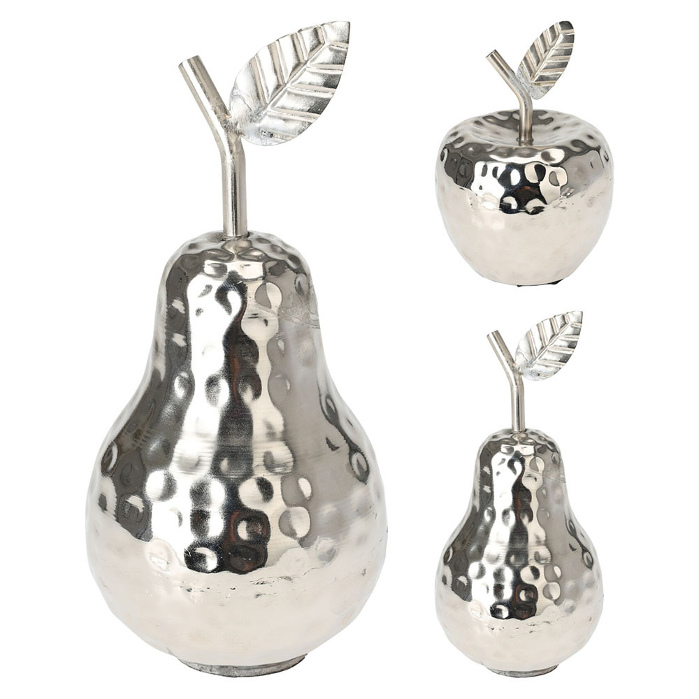 Dekorace jablko, hruška 13 cm, stříbrná barva, hliník