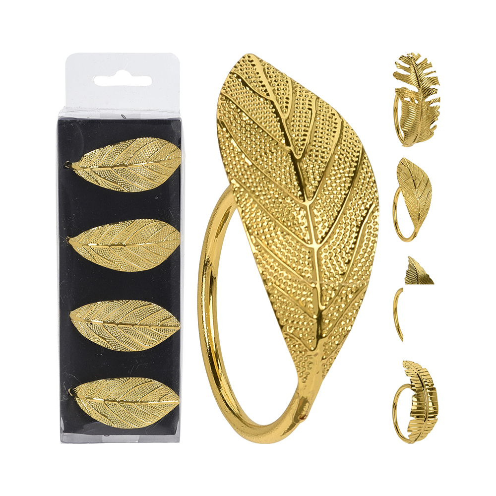Dekorační obroučky na ubrousky - List zlatý, sada 4 ks