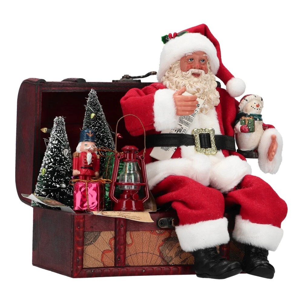 Mikuláš sedící na kufru s dárky 22 cm