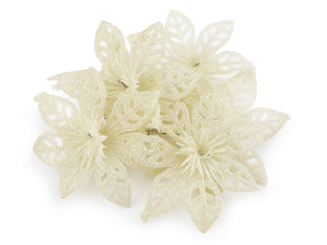 Vánoční hvězda Ø7 cm na drátku s glitry - 72 ks - 6 béžová nejsv.