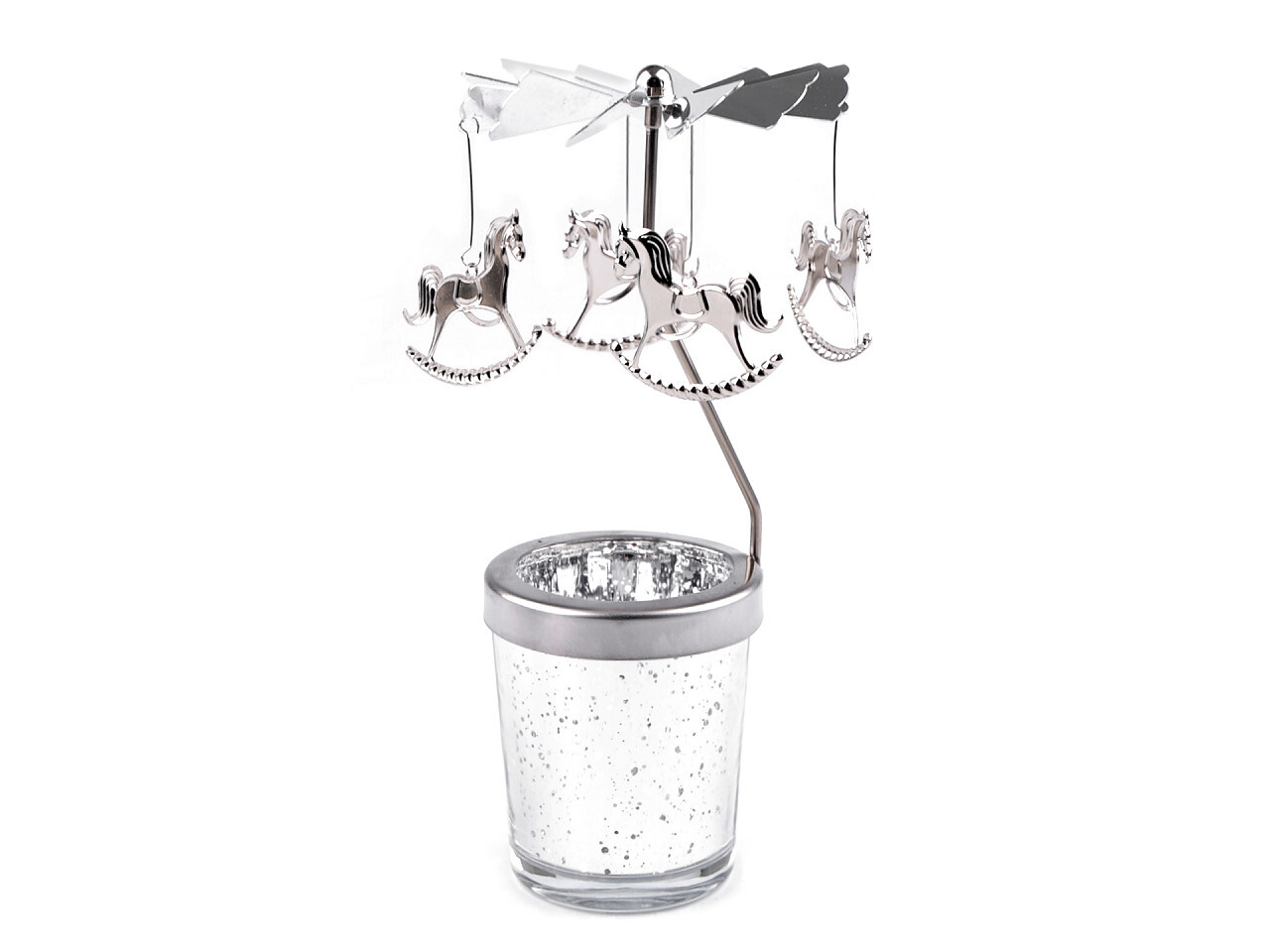 Vánoční kolotoč je příjemnou dekorací v období zimy. Vložte do něj zapálenou čajovou svíčku (není součástí balení) a ozdoby na kolotoči se roztočí (necinkají).