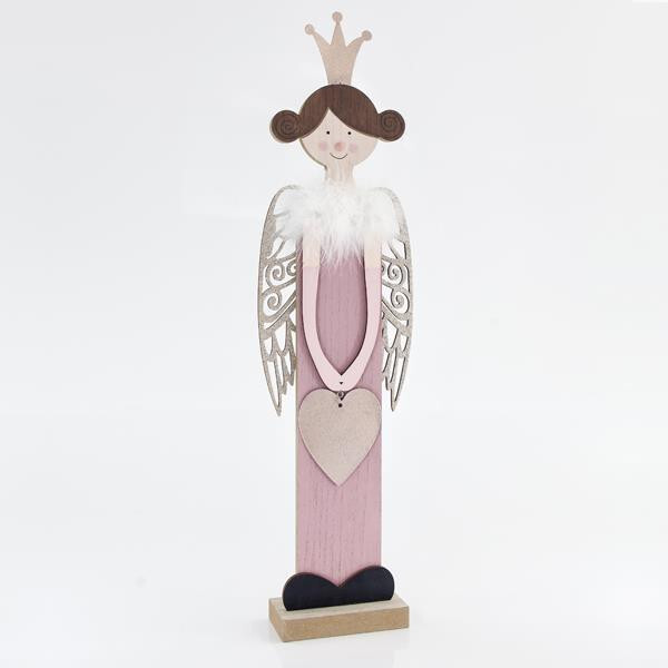 Eurolamp Vánoční dekorace dřevěná růžová víla se zlatými křídly 60 cm, 1 ks