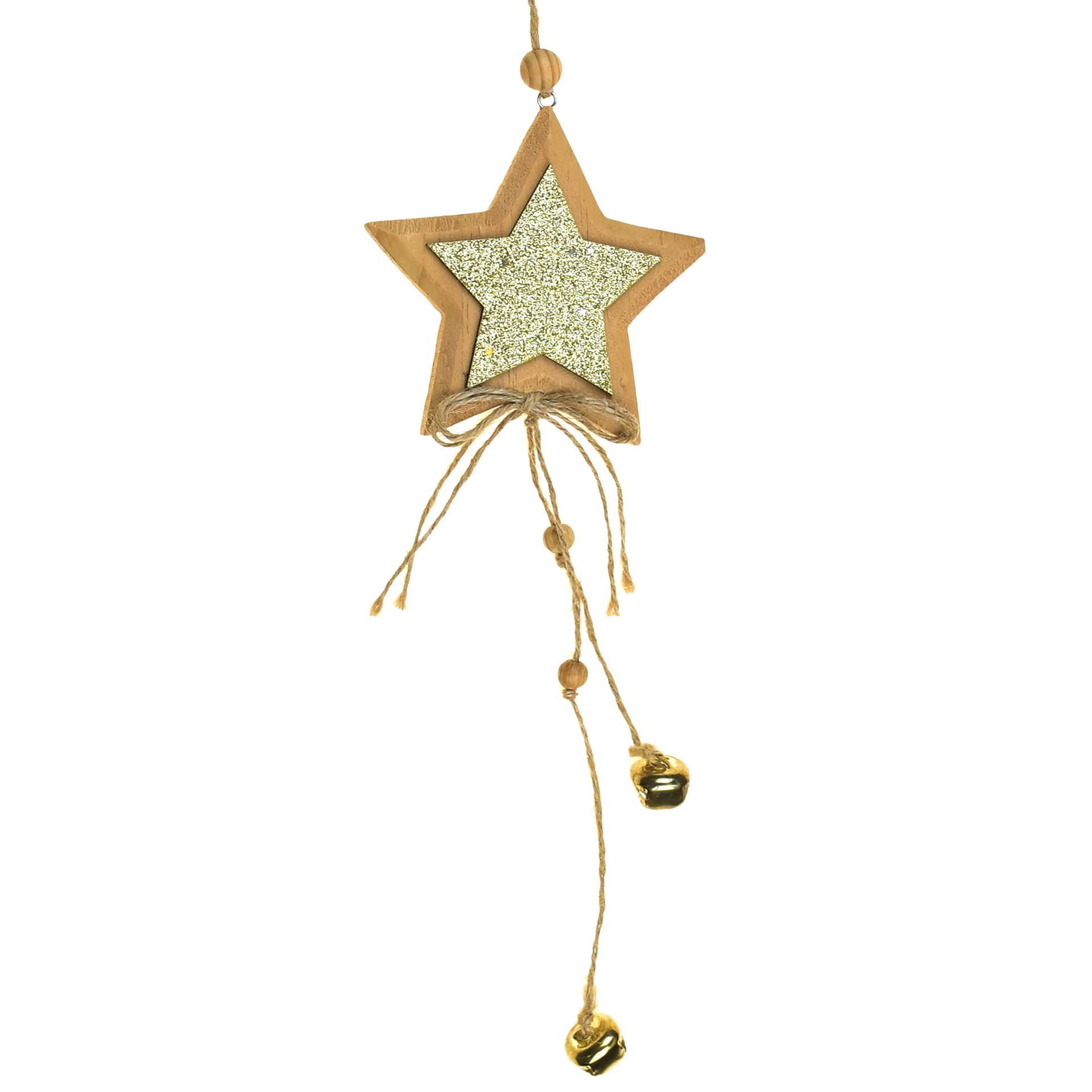 Závěsná hvězda zlatá s rolničkami je perfektní dekorace pro každou příležitost! Tato dřevěná hvězda se zlatým dekorem a rolničkami je skvělým doplňkem vašeho interiéru.Klíčové vlastnosti: Výška: 11 cmŠířka: 11 cmVýška se závěsem: 40 cm prečítať celé
