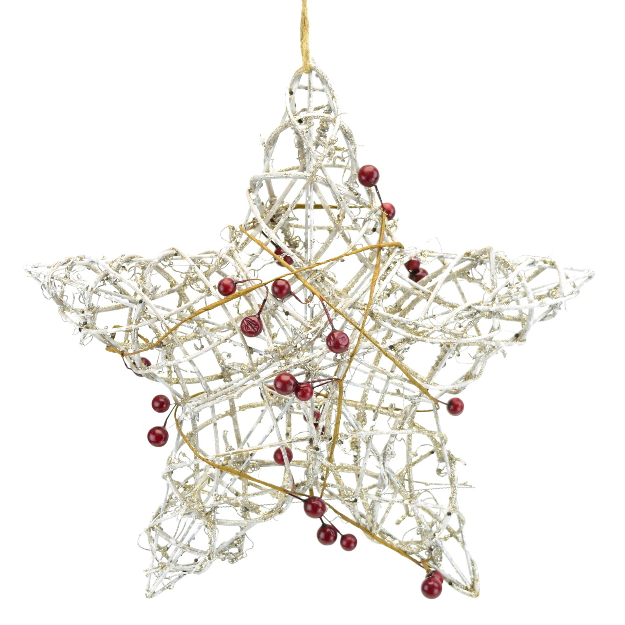 Drátěná hvězda závěsná s bezinkami je výjimečným přírůstkem do vašeho vánočního dekoru. Tato krásná hvězda v bílé barvě je zdobená třpytivým glitrem, který přidává nádherný lesk. S jejími roztomilými bezinkami a poutkem na zavěšení je tato hvězda ideální dekorací pro vytvoření příjemné...