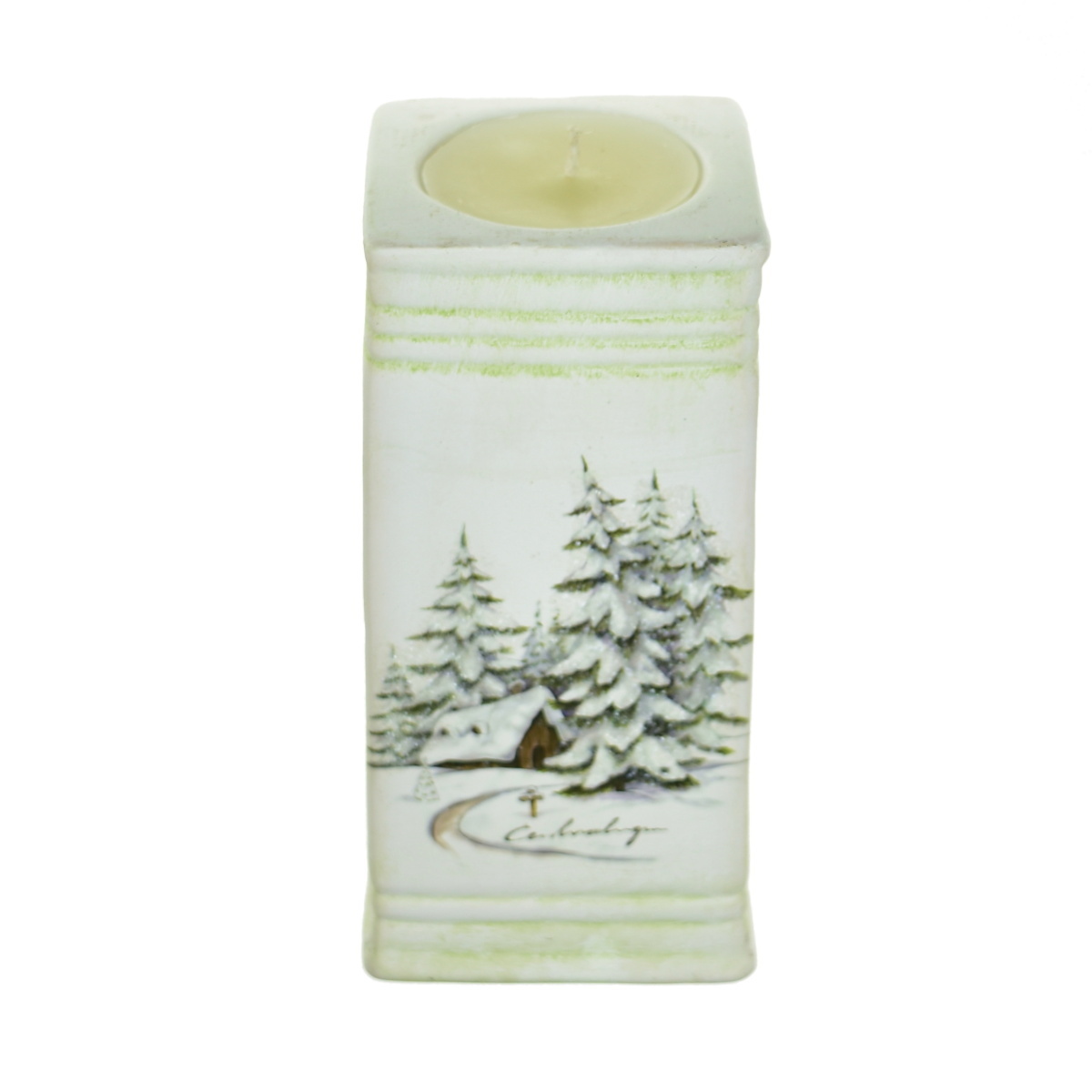 Keramický svícen se svíčkou a vánočním motivem. Barva bílá mat.Výška 15 cm, šířka 6,5 cm. prečítať celé
