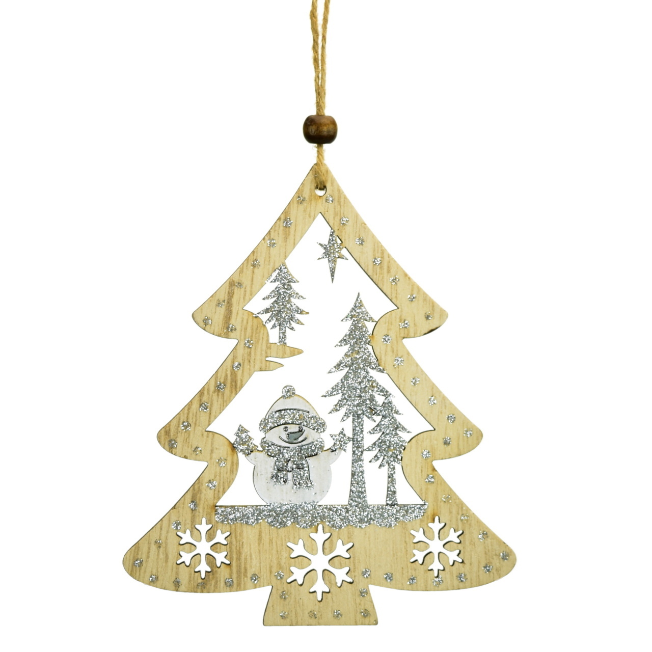 Závěsný dřevěný stromek se sněhulákem. Barva dřeva přírodní, posyp stříbrný gliter.Závěsný stromek se sněhulákem je perfektní vánoční ozdoba pro váš domov. Tento dřevěný stromek s nádherným stříbrným dekorem je vyřezávaný, což mu dodává jedinečný vzhled. S velikostí 14x12 cm a výškou 23 cm je...