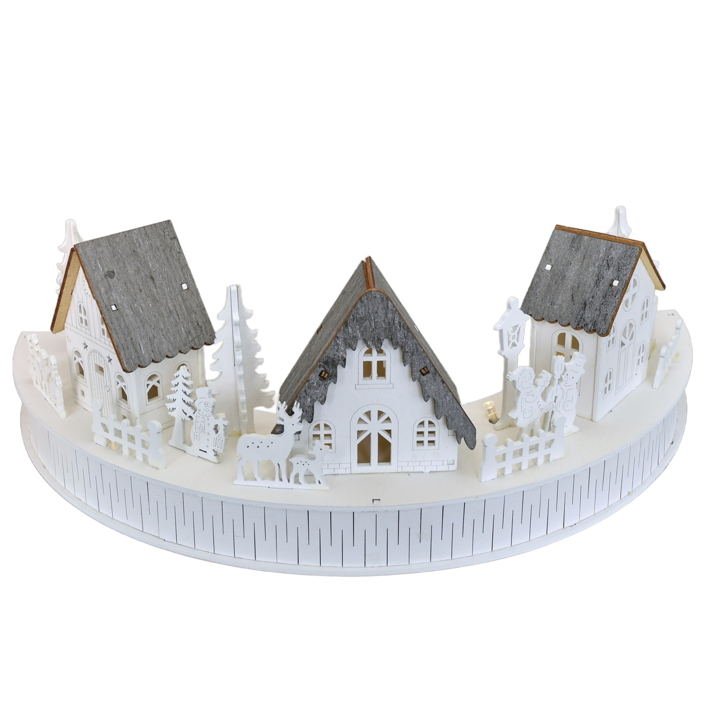Dřevěná vesnička 3 domečky LED 14x40 cm