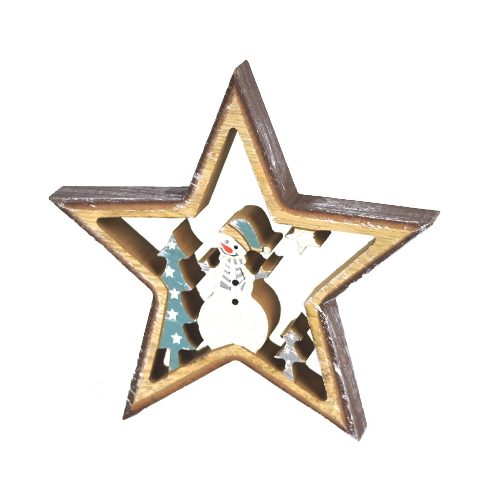 Hvězda dřevěná se sněhulákem 15 cm