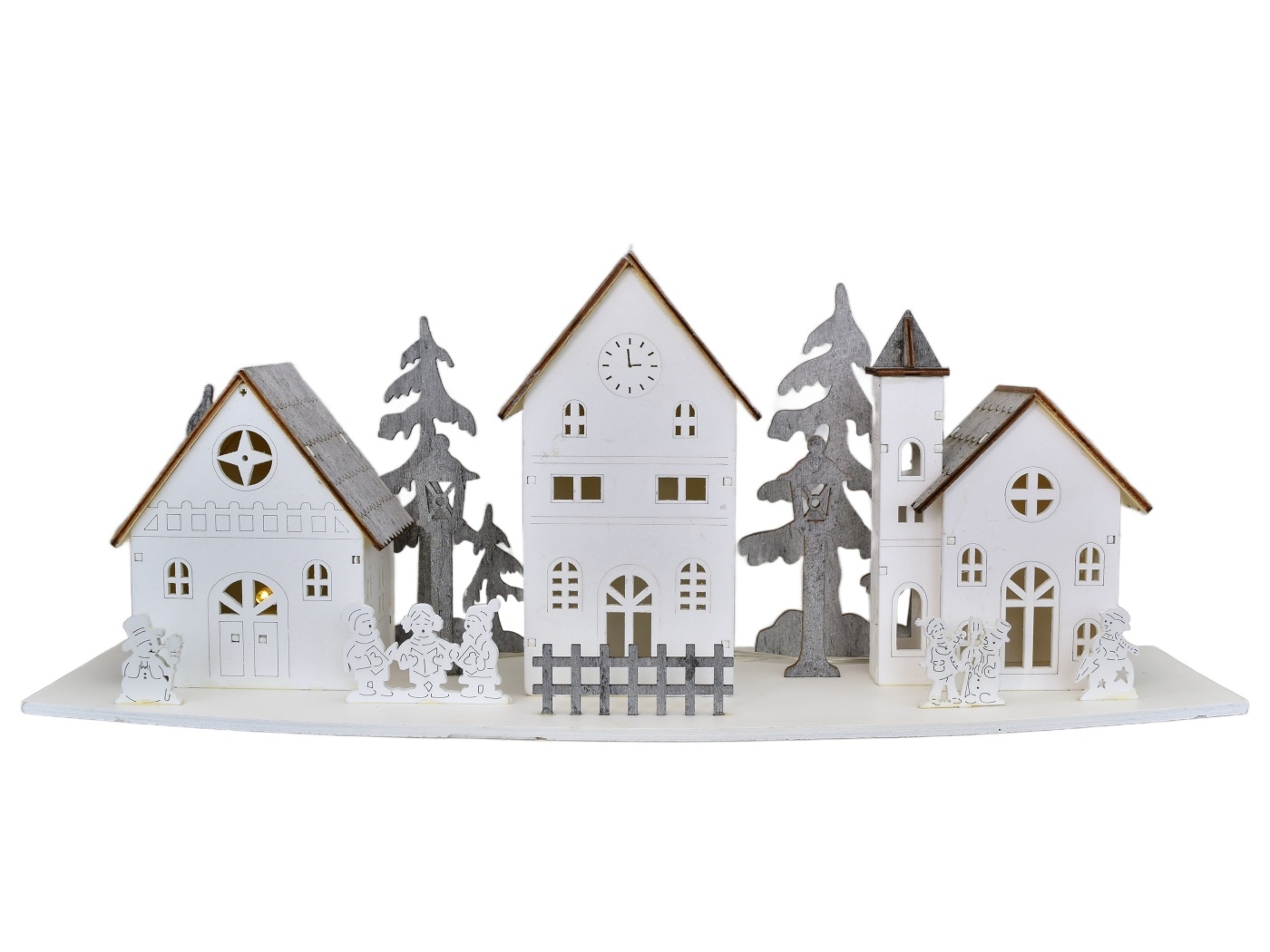Dřevěná vesnička s domečky LED 15,8x44 cm