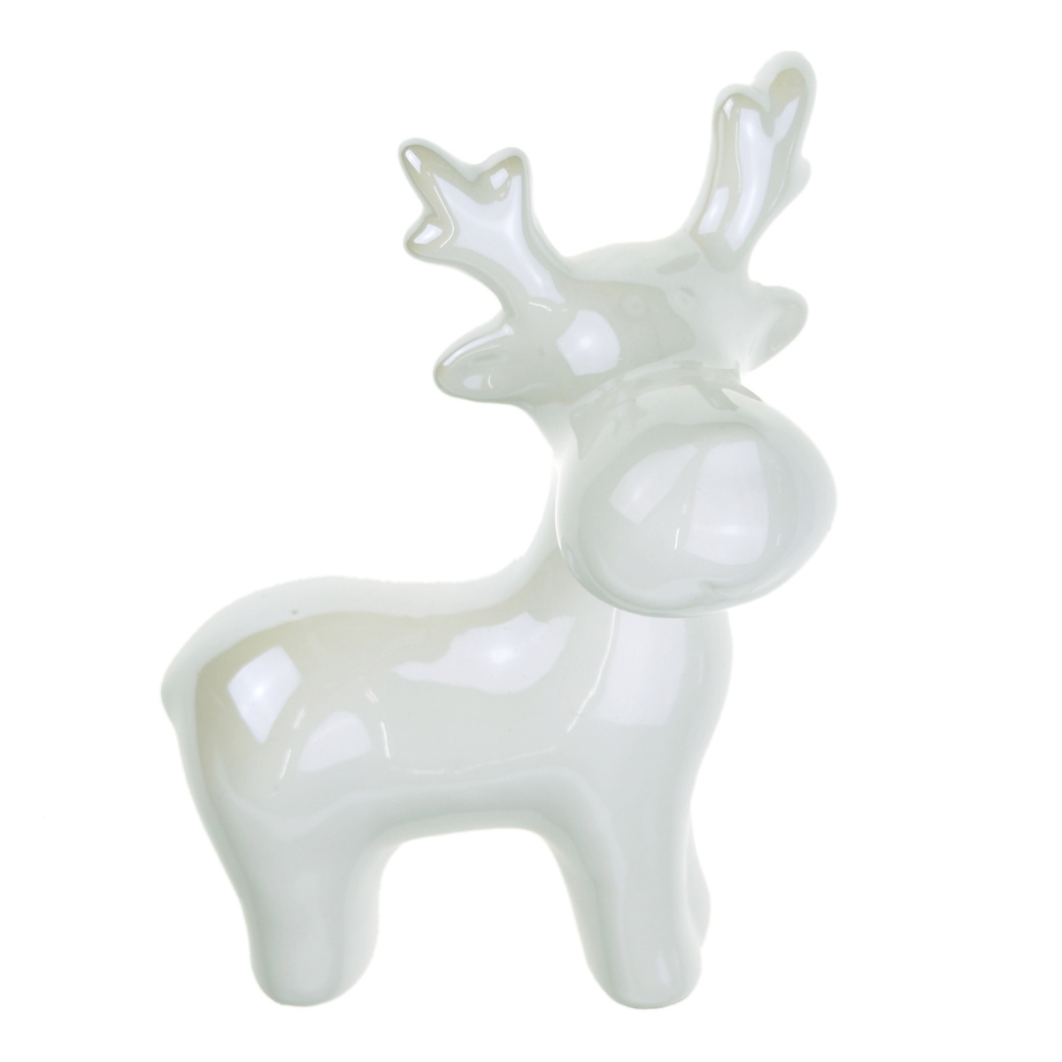 Keramický sob bílá perleť. Výška 13,4 cm, šířka 5,8 cm, délka 8,8 cm. prečítať celé