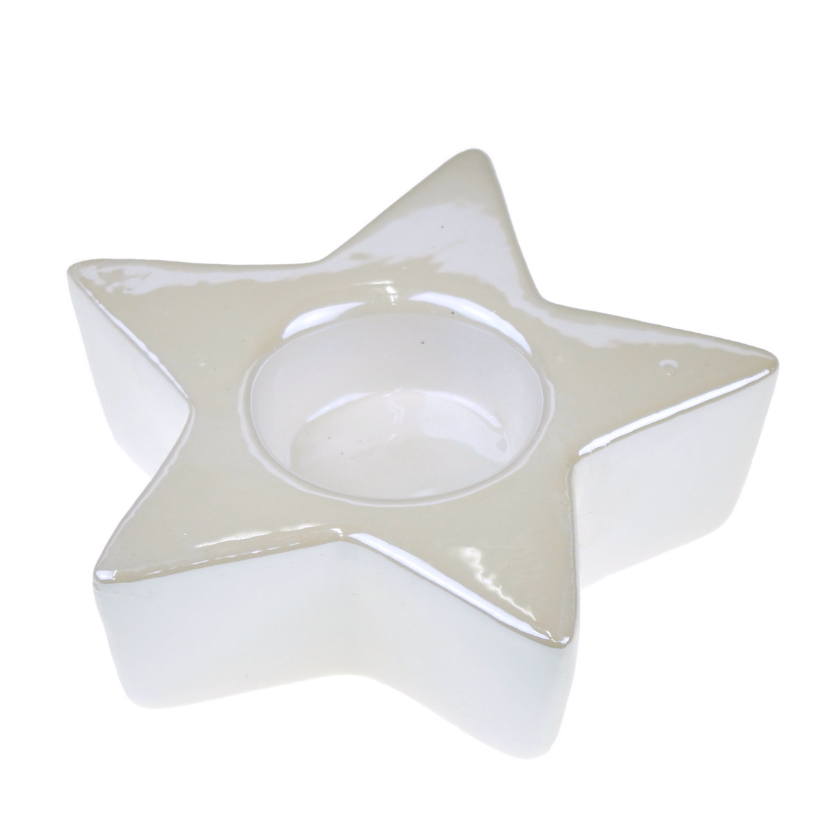 Keramický svícen ve tvaru hvězdy na čajavou svíčku bílá perleť je hodně cool doplněk do vašeho interiéru. S jeho výškou 3,5 cm a šířkou 12 cm je dostatečně malý, aby zapadl kamkoli, ale dostatečně velký, aby byl vidět! Hlavním materiálem je keramika, která mu dodává luxusní a lesklý povrch. Bílá...