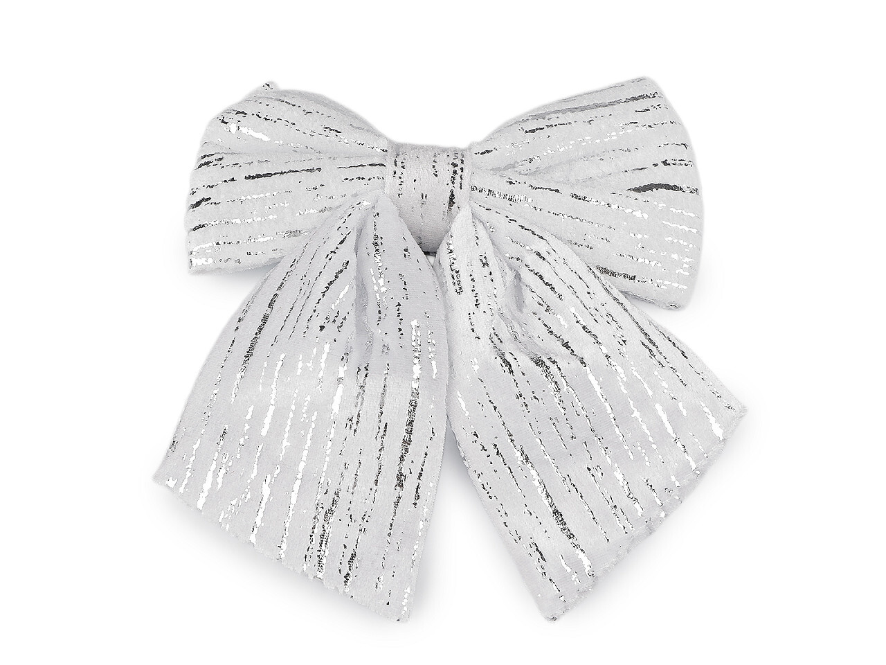 Vánoční mašle sametová 21x25 cm - 1 ks - 1 bílá stříbrná