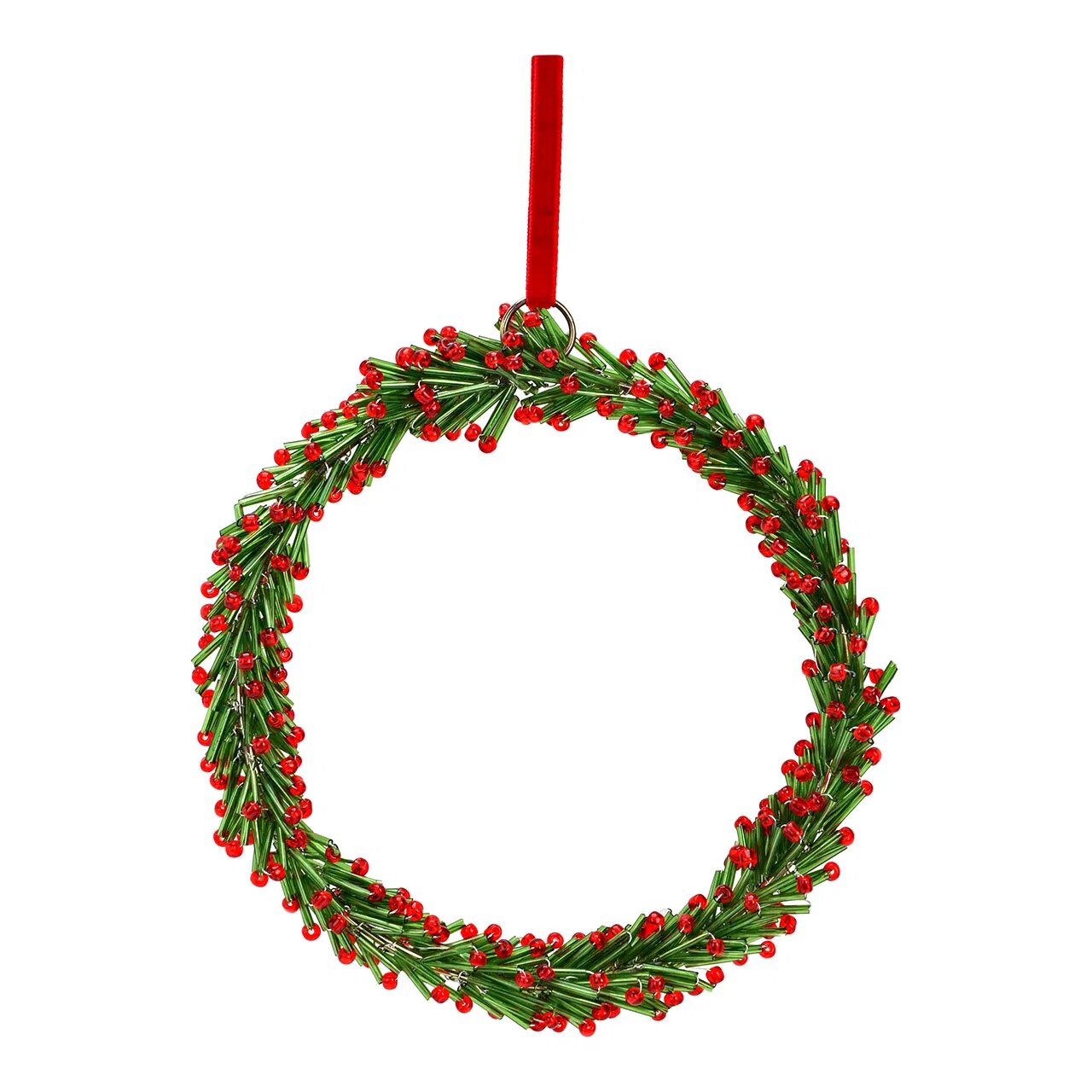 Skleněný vánoční věnec 15 cm na zavěšení, zeleno-červený kruh