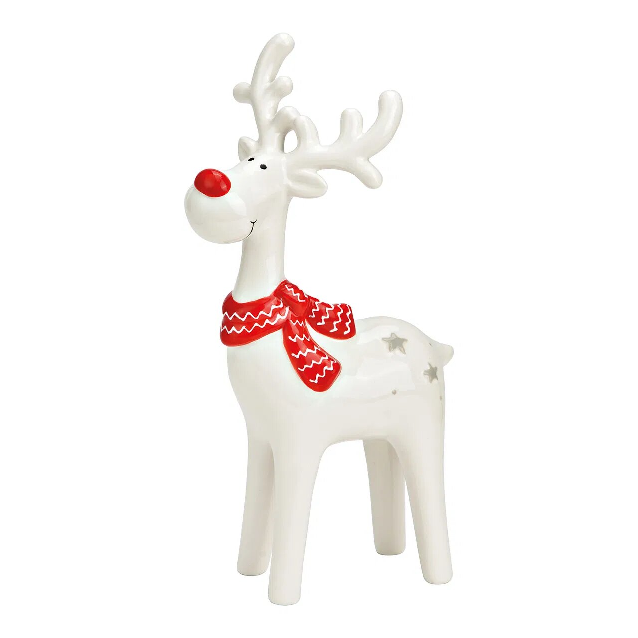 Bílá figurka soba s červenou šálou a nosem 11x5x20 cm, keramika