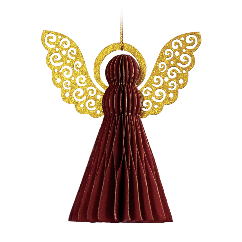 Dekorace červený anděl (2 ks), papír + PET, závěsná, 10 cm