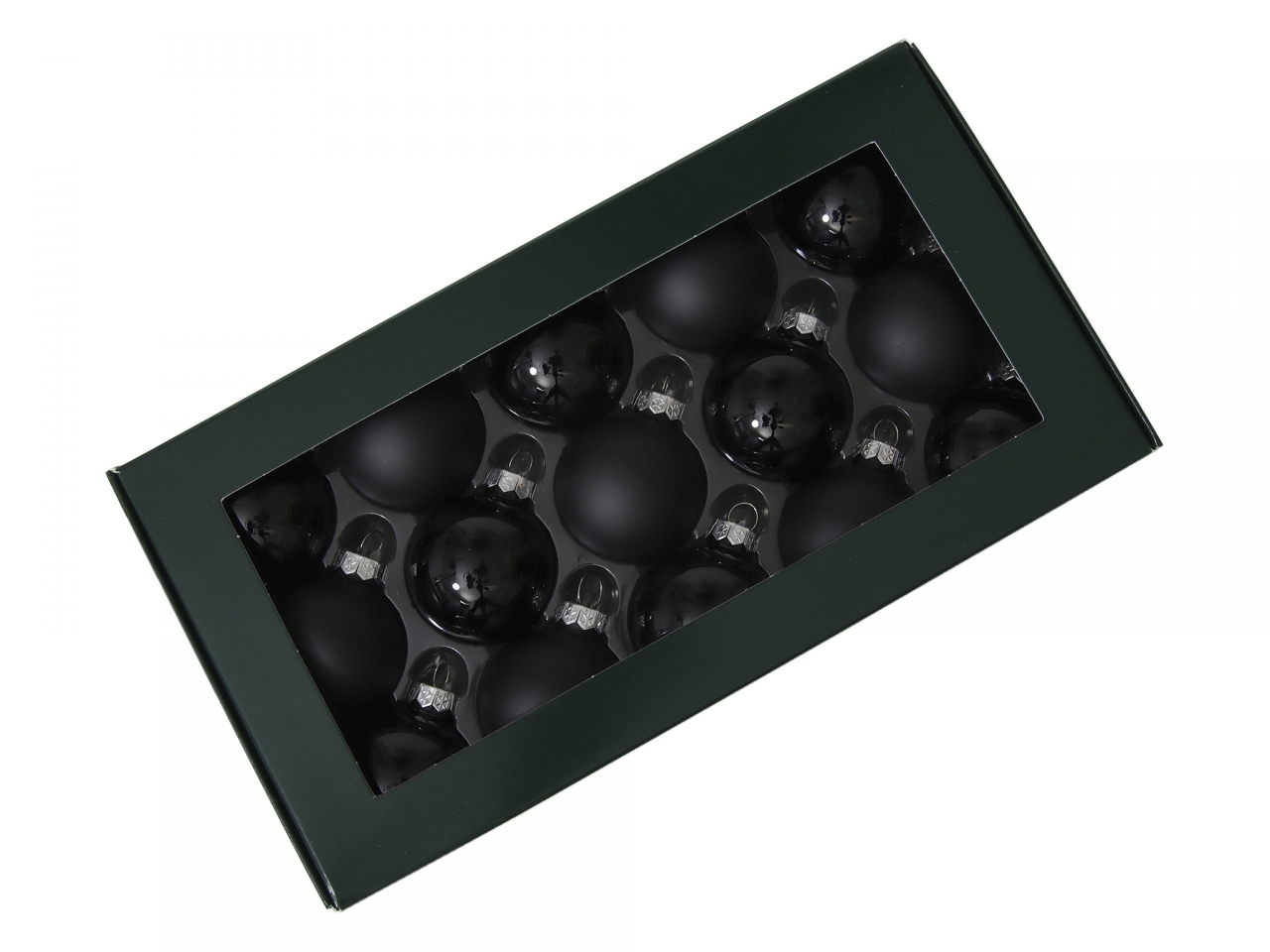 Sada vánočních skleněných baněk 4 cm, černé, 15 ks