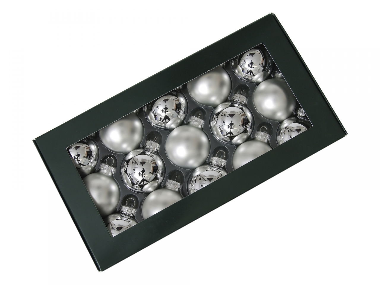 Sada vánočních skleněných baněk 4 cm, stříbrné, 15 ks
