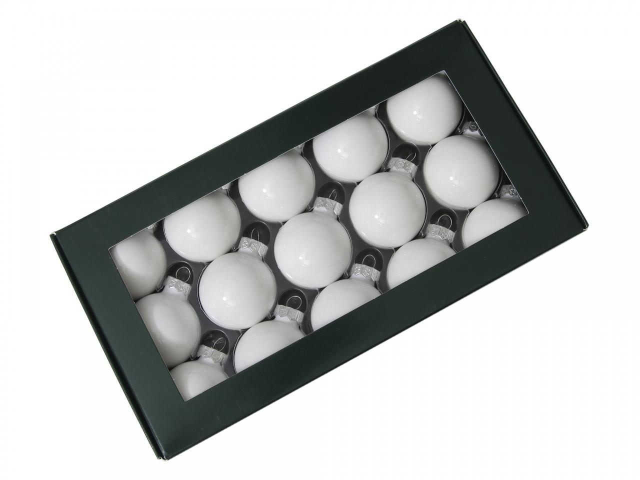Sada vánočních skleněných baněk 4 cm, bílý opál, 15 ks