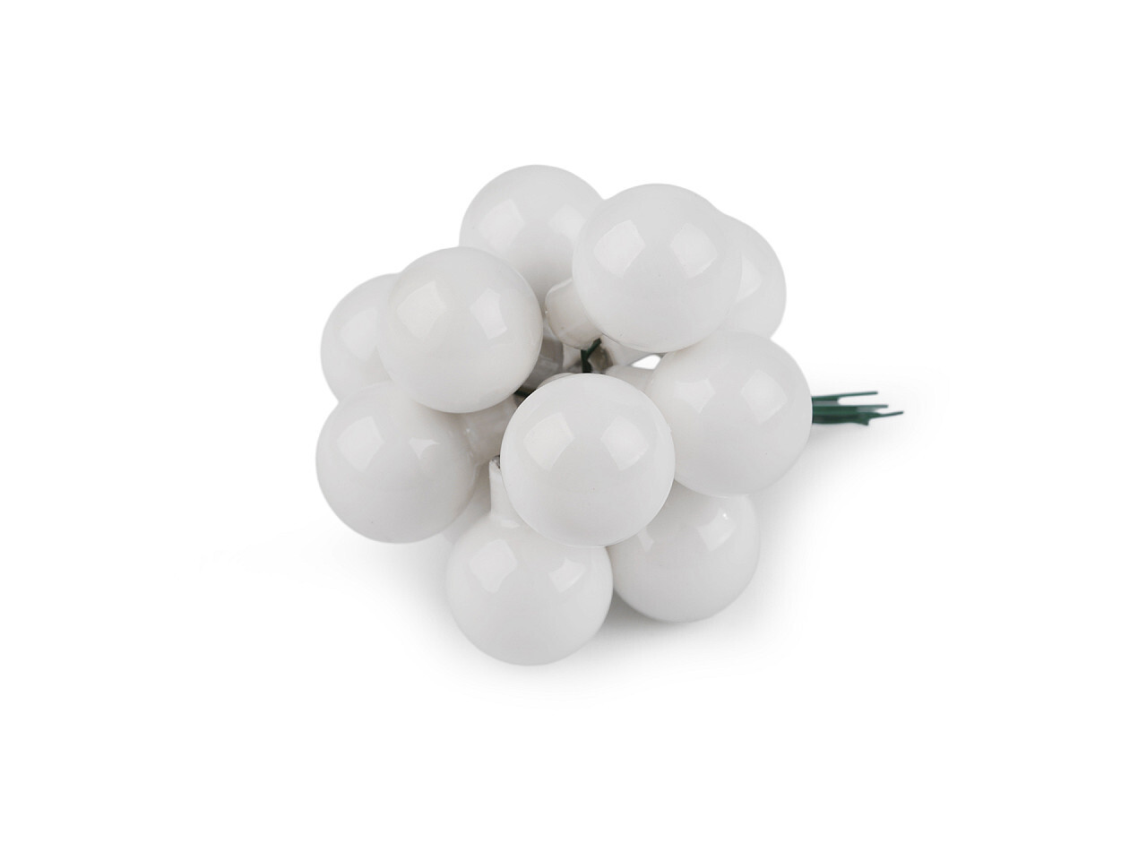 Vánoční skleněná baňka na drátku Ø2 cm - mat a lesk - 12 ks - 1 bílá lesk