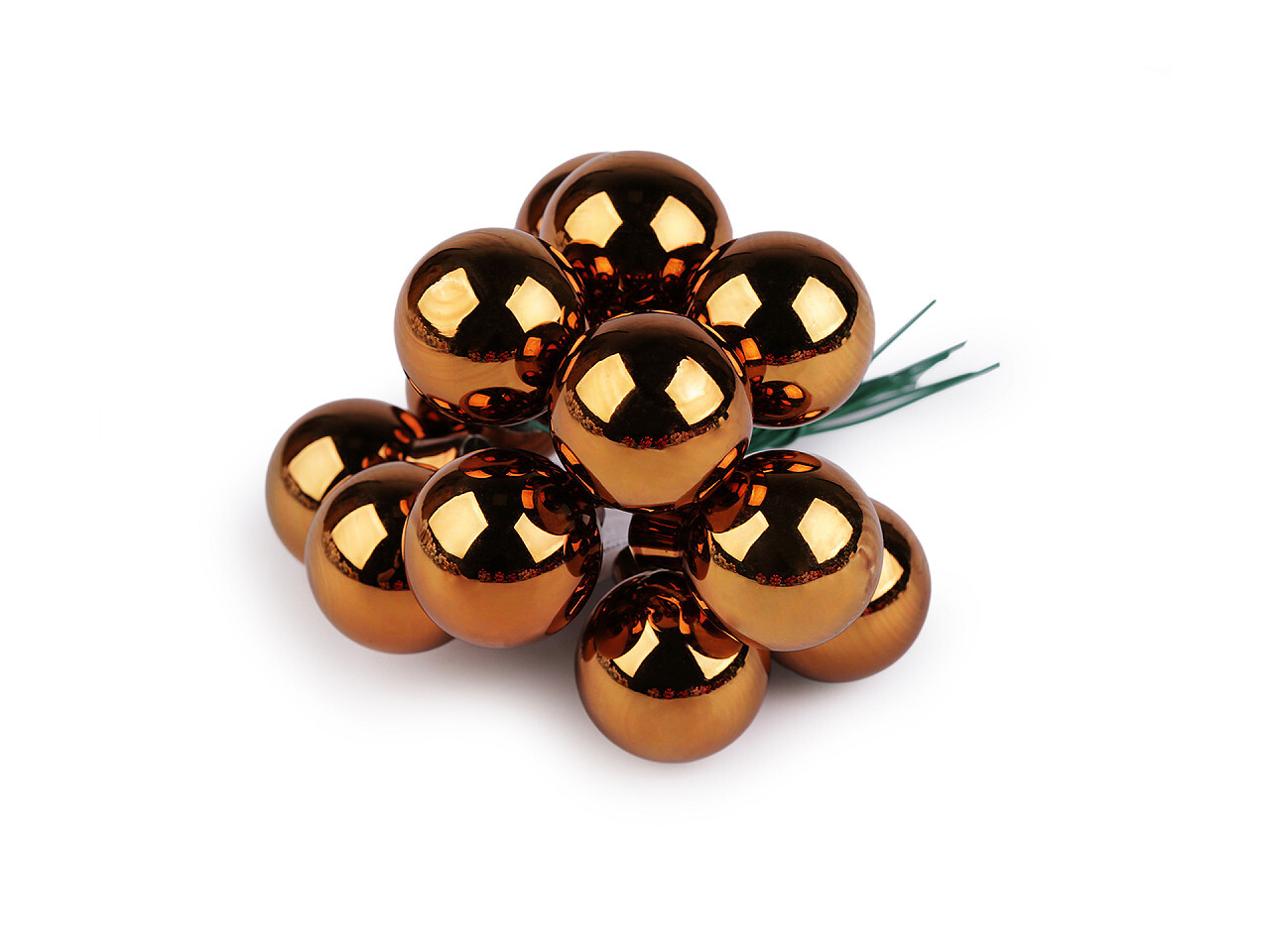 Vánoční skleněná baňka na drátku Ø2 cm - mat a lesk - 12 ks - 7 zlatá tmavá lesk