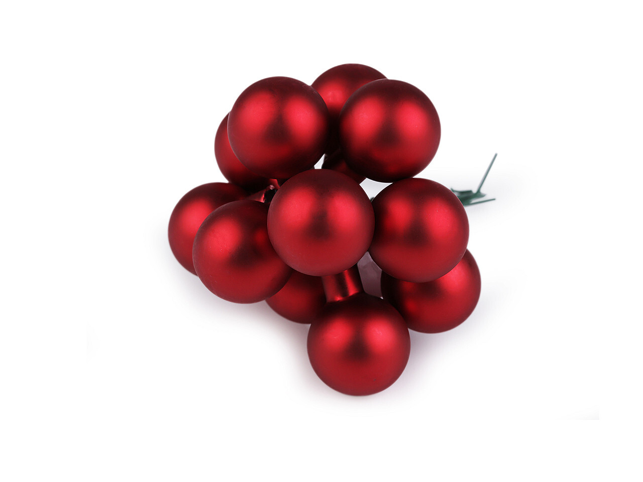 Vánoční skleněná baňka na drátku Ø2 cm - mat a lesk - 12 ks - 10 červená mat