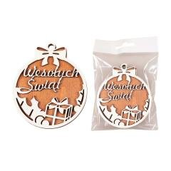 Drewniana bombka LUX 3D z napisem Wesołych Świąt.Średnica 8cm,wysokość całkowita 10cm.W opakowaniu 3szt prečítať celé