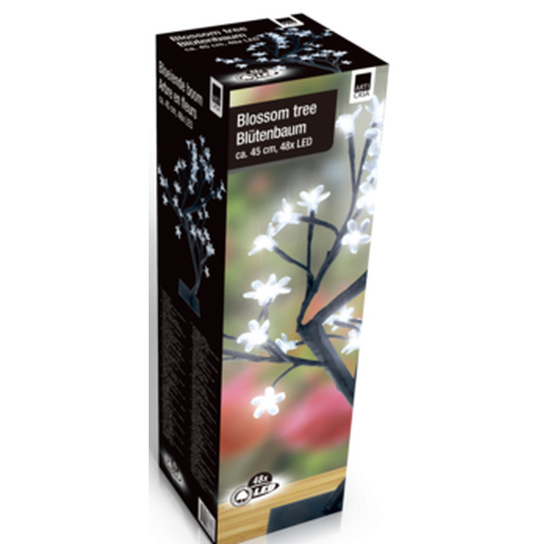 Vánoční dekorace - rozkvetlá větev, 48x LED, 45 cm, na baterie 4x AA