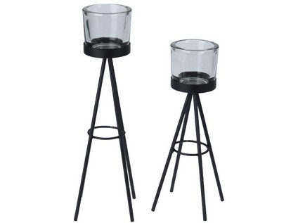 svietnik na nôžkach sada 2diel. (19x8cm, 24x8cm) sklo/kov.ČER