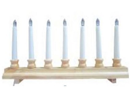 svícen vánoční 7 svíček LED,teplá BÍ,dřev.přír.42,5x21,5x5cm,2xtuž.AA baterie