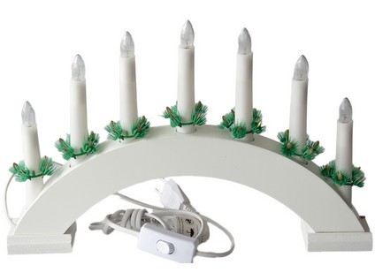 svietnik vianočný el. 7 sviečok, teplá BÍ, oblúk, drev. BÍ, do zásuvky