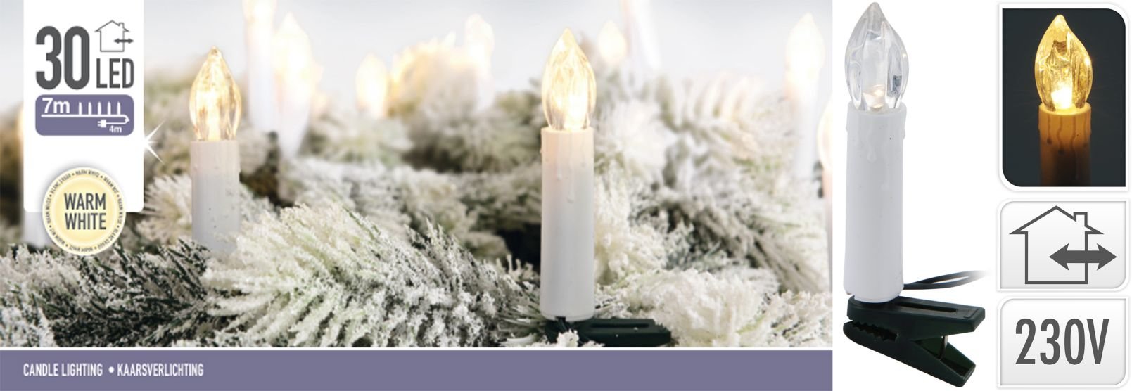 Vianočné svetlá 30 LED žiaroviek - sviečka sú ideálnou voľbou pre tých, ktorí chcú vytvoriť teplú a príjemnú vianočnú náladu vo svojom dome. Vďaka jemnému teplému bielemu svetlu dodajú vášmu interiéru kúzlo sviatkov a pohodlie.