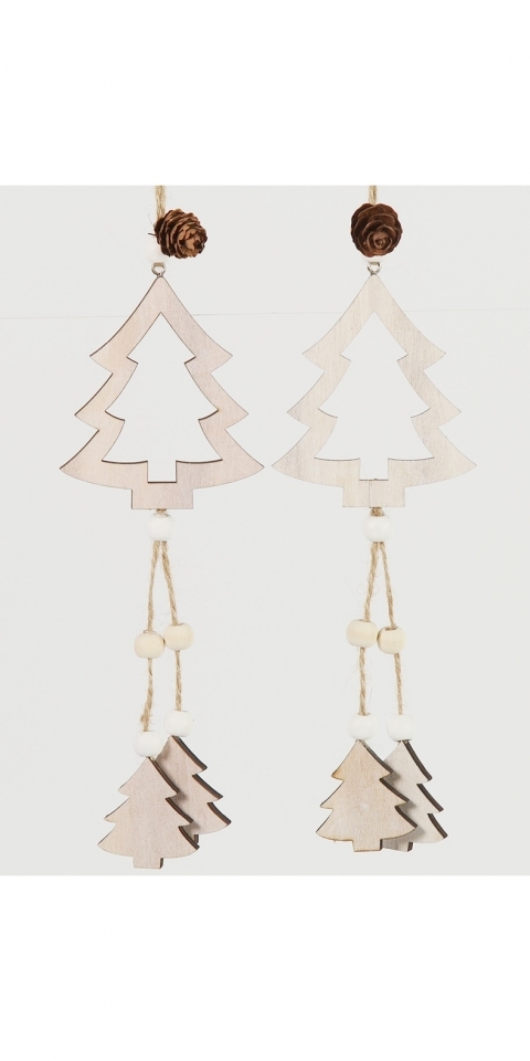 Dřevěná závěsná dekorace - stromeček s šiškou. V sadě jsou 2 ks.materiál: překližka, jutarozměr:délka závěsu 28 cmdélka dekorace 7,5 cmhloubka 0,5 cm prečítať celé