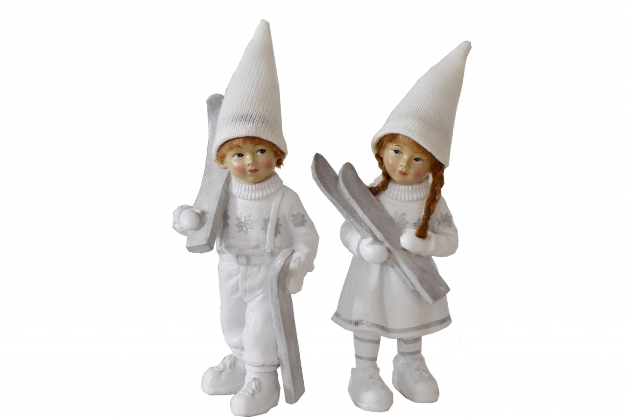 Figurka holka, kluk na lyžích, 26x11,5x10 cm
