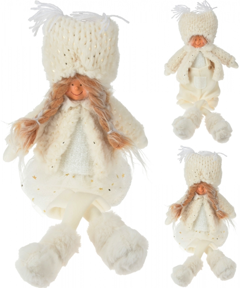 Dekorativní látková figurka holka, kluk. Figurky jsou sedící s volně se pohybujícíma nohama.Materiál: textil, polyresinový obličejRozměry:výška 50 cm (včetně nožiček)šířka 16 cmhloubka 12 cm1 balení = 2 figurky, mix druhů (holka, kluk). prečítať celé