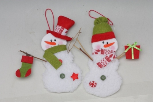 Sněhulák z plsti, na zavěšení. Výška 18 cm. 1 balení obsahuje 12 ks, mix druhů (s dárkem a punčochou). prečítať celé