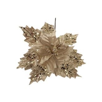 Dekorační květ - zápich. Rozměry : průměr 15 cm. Barva : zlatá. Materiál : textil, květ je vystužený drátkem. prečítať celé