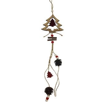 Dekorační stromeček k zavěšení. Rozměry : 9,5 x 0,5 cm, výška 10 cm, celková délka dekorace 50 cm. Barva : kombinace přírodní, zlatá, červená. Materiál na bázi dřeva. prečítať celé