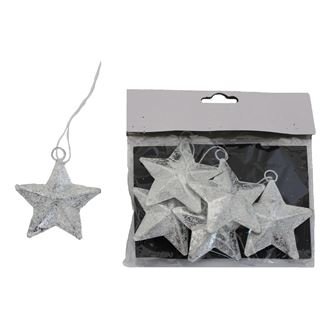 Sada dekoračních hvězdiček k zavěšení. Sada obsahuje 6 hvězdiček. Rozměry : průměr 6,5 cm, tloušťka 1,5 cm. Barva : stříbrná. Materiál : kov. prečítať celé