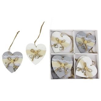 Sada dřevěných srdíček k zavěšení. Sada obsahuje 8 kusů, 4 bílé a 4 šedé srdíčka. Rozměry : 7 x 7,5 cm, tloušťka 0,5 cm. Barva : bílá, šedá. Materiál : dřevo. prečítať celé