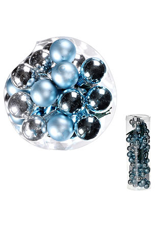 Ozdoby skleněné na drátku, modro-stříbrné barvy, pr.1.5cm, cena za 1 balení(72ks