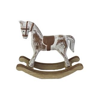 Tento elegantný a štýlový koník je vyrobený z kvalitného materiálu na báze dreva a zachováva autentický vzhľad vďaka kombinácii bielej farby s prírodnými odtieňmi. Jeho kompaktné rozmery 13 x 4,5 cm a výška 11 cm ho robia ľahko umiestniteľným takmer kdekoľvek - na poličku, pracovný stôl alebo ako originálny doplnok do detskej izby.