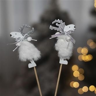 Sada dekoračních zápichů - sob.Sada obsahuje 2 zápichy.Zápichy mají rozměry 4,5 x 0,5 cm, výšku 8 cm, celková délka zápichu 36 cm.Barva : kombinace bílá se stříbrnou.Materiál na bázi dřeva, textil. prečítať celé