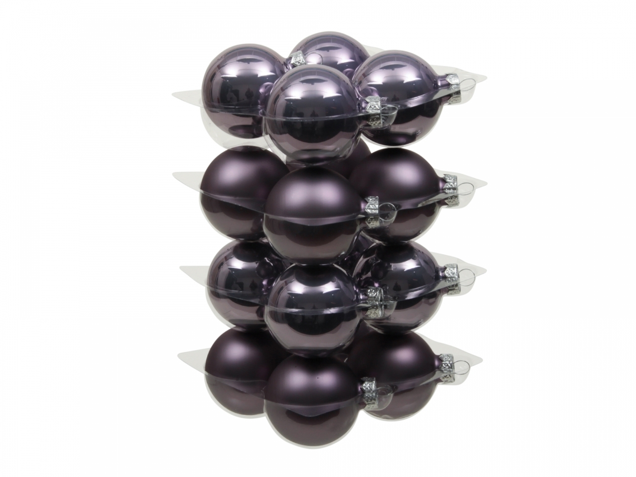 Sada 16 ks skleněných baněk v barvě ojíněného šeříku. V sadě jsou namíchané lesklé a matné baňky.Materiál: skloRozměr:průměr 5,7 cm prečítať celé