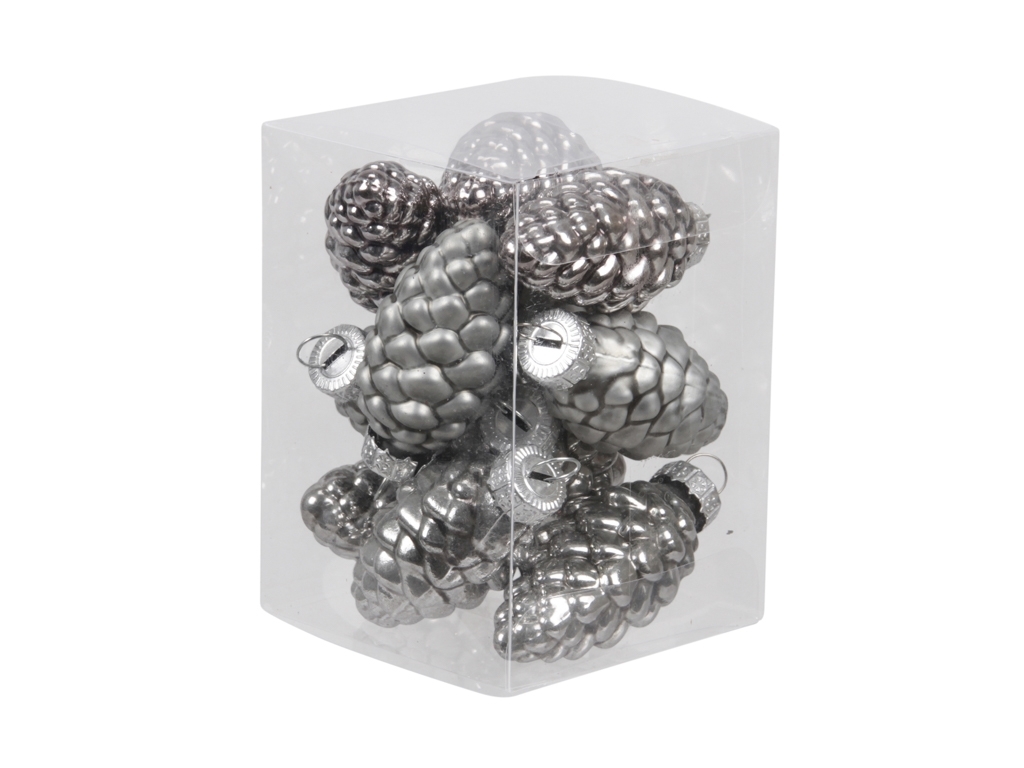 Sklenené banky - šišky, titánovo šedé 6 cm, sada 12 ks