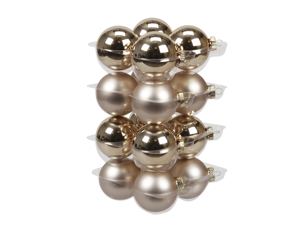 Sada 16 ks skleněných baněk v barvě autumn blonde. V sadě jsou namíchané lesklé a matné baňky.Materiál: skloRozměr:průměr 5,7 cm prečítať celé