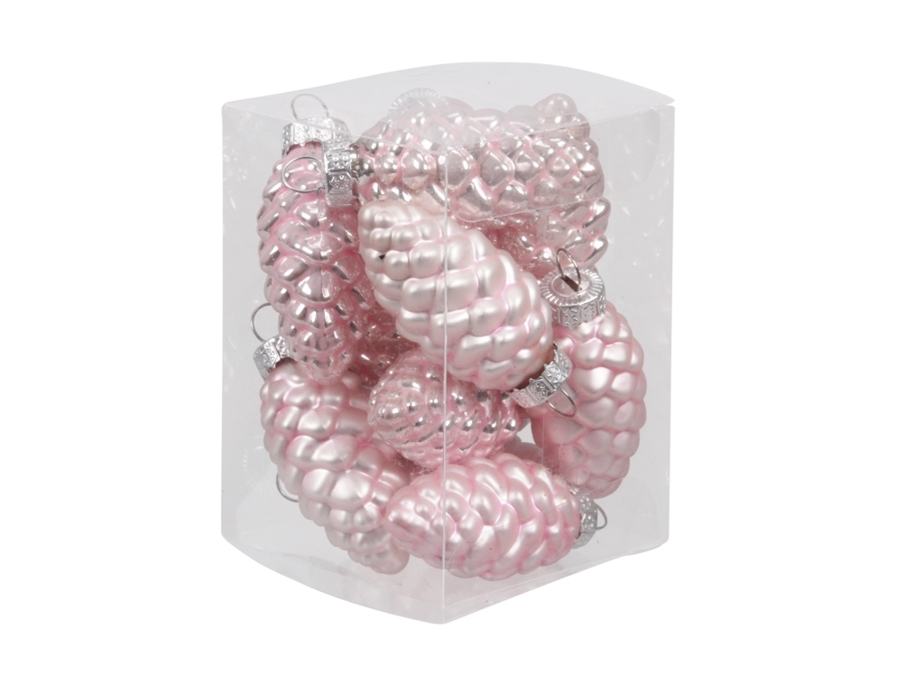Skleněné baňky - šišky, powder pink, 6 cm, sada 12 ks