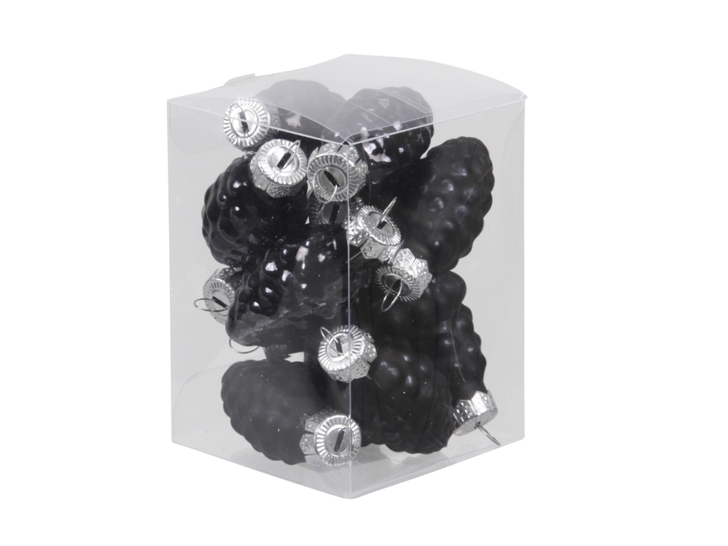Skleněné baňky - šišky 6 cm, černé, sada 12 ks