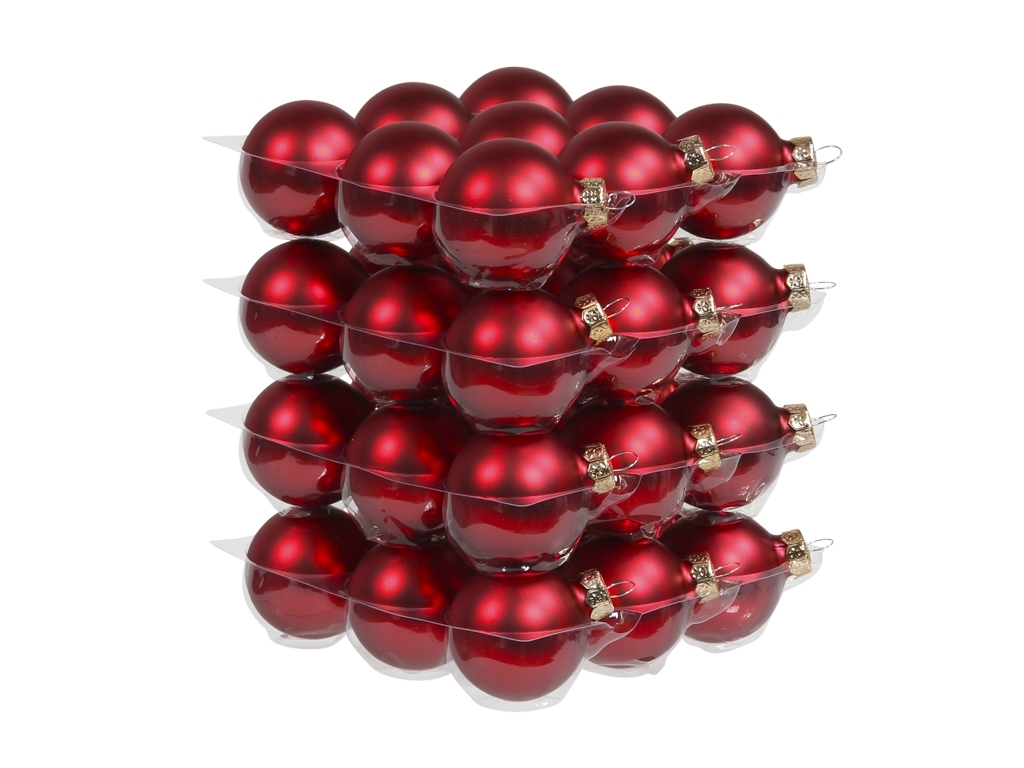 Sada 36 ks skleněných baněk v barvě červené matné.Materiál: skloRozměr:průměr 4 cm prečítať celé
